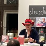 Die Vertretung für die angekündigte Jenny Heimann, übernahm Waterhues. Er stellte von Theres Essmann die Novelle „Schwarzer Schwan“ vor. Dies kündet von einem unvorhergesehenen Ereignis, und so kommen sich ein Taxifahrer und ein wortkarger Paganini-Fan als Fahrgast näher. Doch das wenige, das der Fahrgast sagt, ist so pointiert, dass es den Fahrer mit seinem Problem weiterbringt. Lesenden beschere es zwar nur einen Nachmittag Lesevergnügen, sie benötigten allerdings drei Wochen zum Verarbeiten, so Waterhues. Und der Kommentar eines Rezensenten, dass der Buchinhalt über dem Herzen ruhe, veranlasste Vatheuer zu der Anmerkung, dass er jedes Buch über dem Herzen trage, da er beim Lesen immer einschlafe.